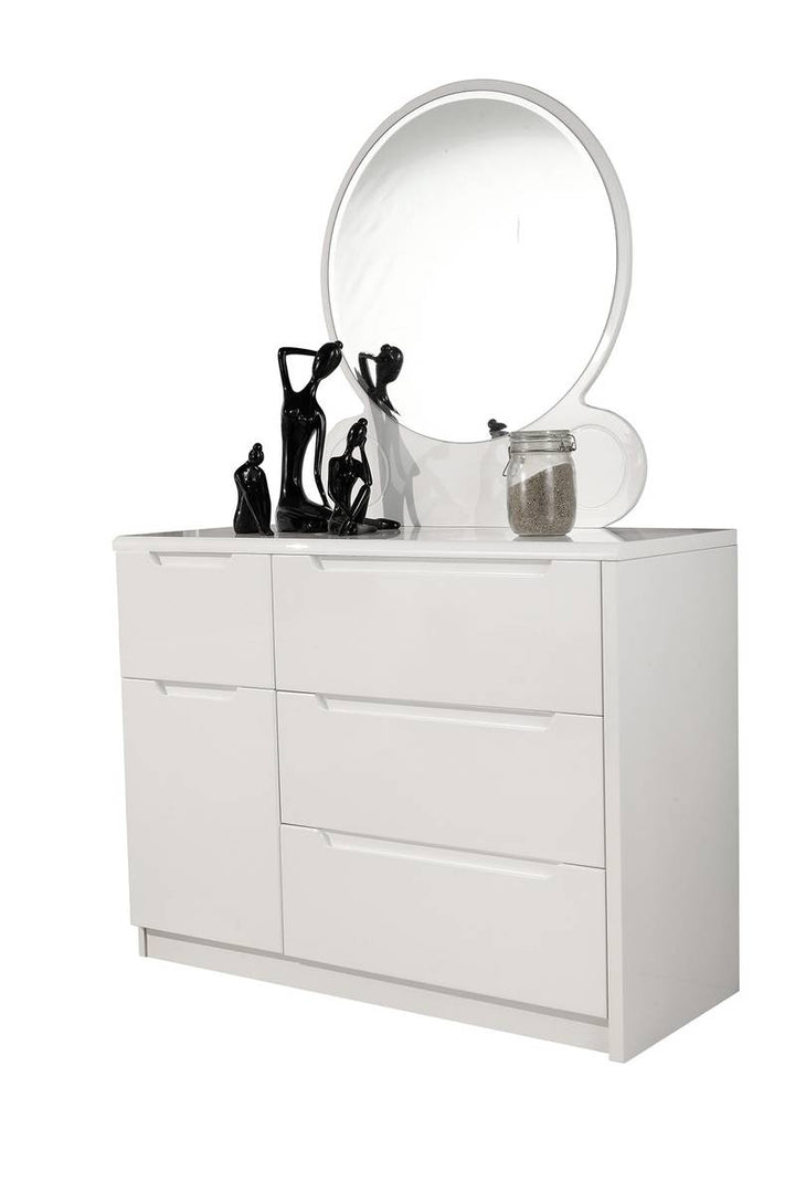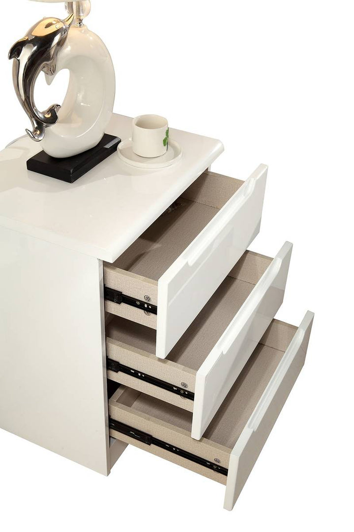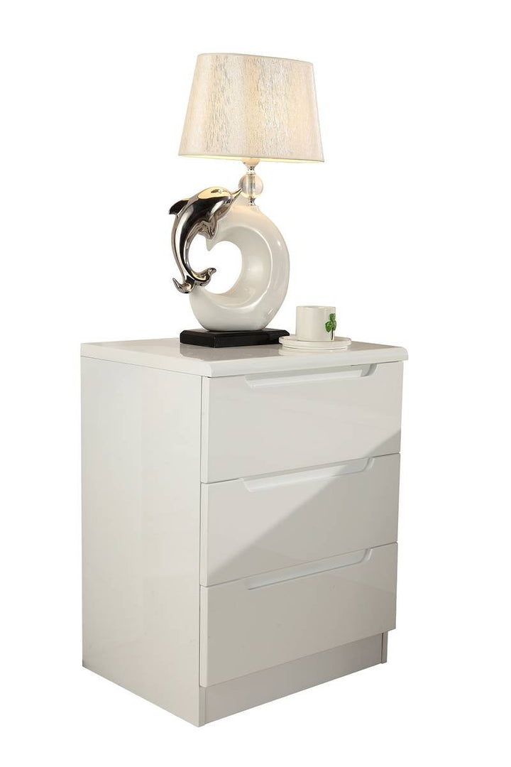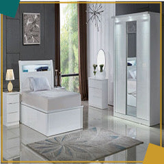 Features: Design: Modern and stylish bed frame in High Gloss White, available with various headboard options. Construction: Solid MDF Wood.